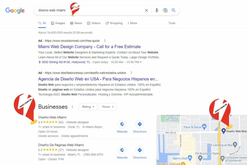 Cuando pagas por anuncios en Google, Google se encarga de ponerte en la posición número 1. Es una posición privilegiada. Pero eso no quiere decir que para el Buscador seas el #1, el mejor o el más relevante en las búsquedas. Simplemente significa que pagas por el puesto. Ocupamos la posición #1 en búsquedas de mapas locales. Y, de hecho, si nos está viendo desde otras ciudades o países, es probable que seamos el resultado número 1 de su búsqueda.